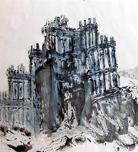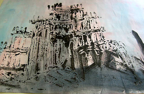 Von meinen gedruckten Arbeiten zeige ich hier die Werkgruppe 9/11. Monotypien der Ruine des WTC, einem Medienbild, das um die Welt ging. Es sind Momentaufnahmen der Zerstörung und von dem, was übrig bleibt.